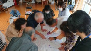 支え合いマップつくりを行いながら、地域の現状、情報共有を行い、緩やかな見守り体制構築を目指します。