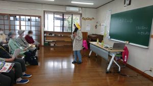 地域包括支援センターの説明の後、県内の特殊詐欺の被害状況、国際電話着信拒否設定について説明をしました