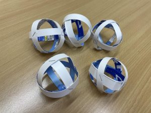 レクリエーショングッズの作成では、牛乳パックを使ったボール作りを行いました