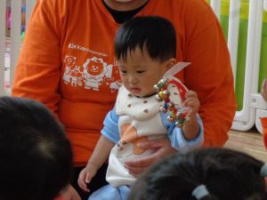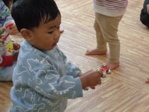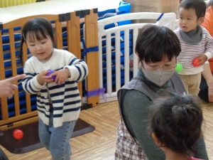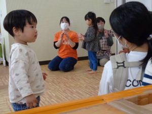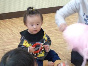 今月のリトミック教室は子育てサロンも兼ねており、保育園のお友達と一緒に楽しみました。