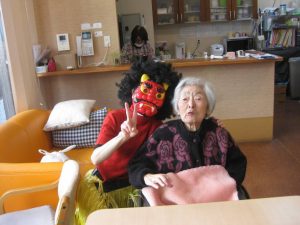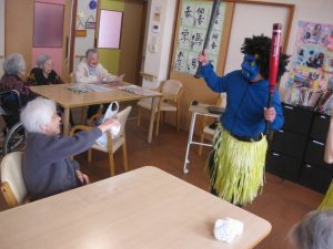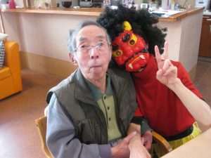 豆に扮した鬼と、鬼を投げる利用者様達♬
