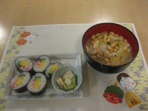 皆で恵方巻を作り、夕食に美味しくいただきました♬
