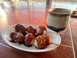 お羽黒山にある茶店で宇都宮市の絶景を見下ろしながら最高の環境の中、(夜景もきれいだそうです) 当事業所の登録ヘルパーさん手作りのいも串とみそおでんをいただいてきました。