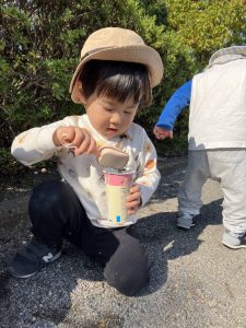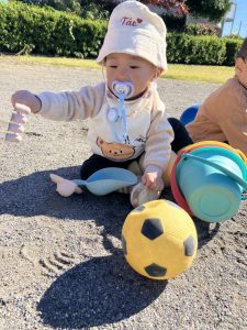 お子さま達は元気いっぱい走ったり、砂遊びをしたり、思い思いの遊びを楽しんでいます(^^♪