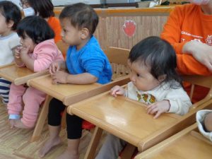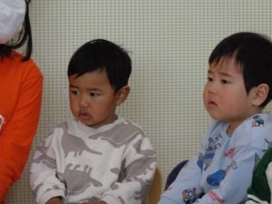 2月のお誕生会は「はたらく🚙くるま・おめんです」の絵本の読み聞かせでした